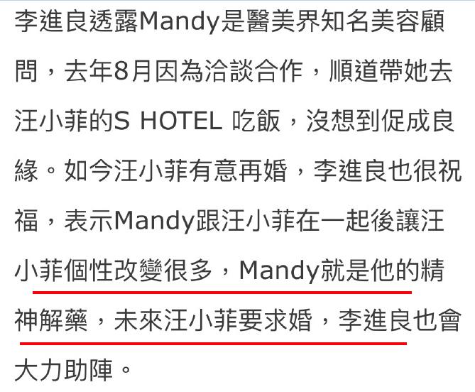 得知兄弟要二婚的李进良也很祝福,说 Mandy 让汪小菲性格变好了,是他的精神解药,还要要大力助阵汪小菲的求婚。