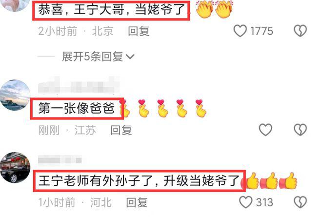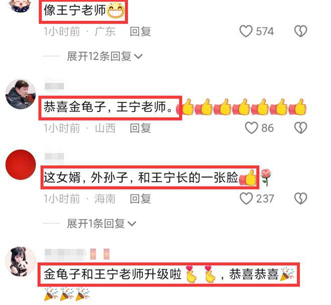 看到王逸宸宝宝的照片,网友也是议论纷纷,有人觉得宝宝长得像爸爸,也有人觉得宝宝和姥爷王宁是一个模子里刻出来的。当然更多的人是祝福金龟子和王宁升级当姥姥姥爷了!