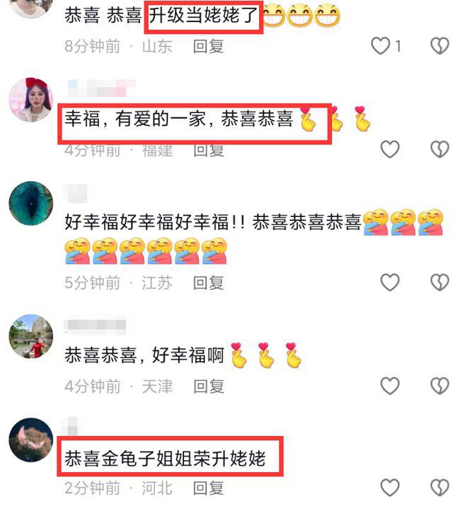 得知金龟子官宣当外婆,网友均是一片祝福,纷纷感慨金龟子一家实在 " 太幸福 "。