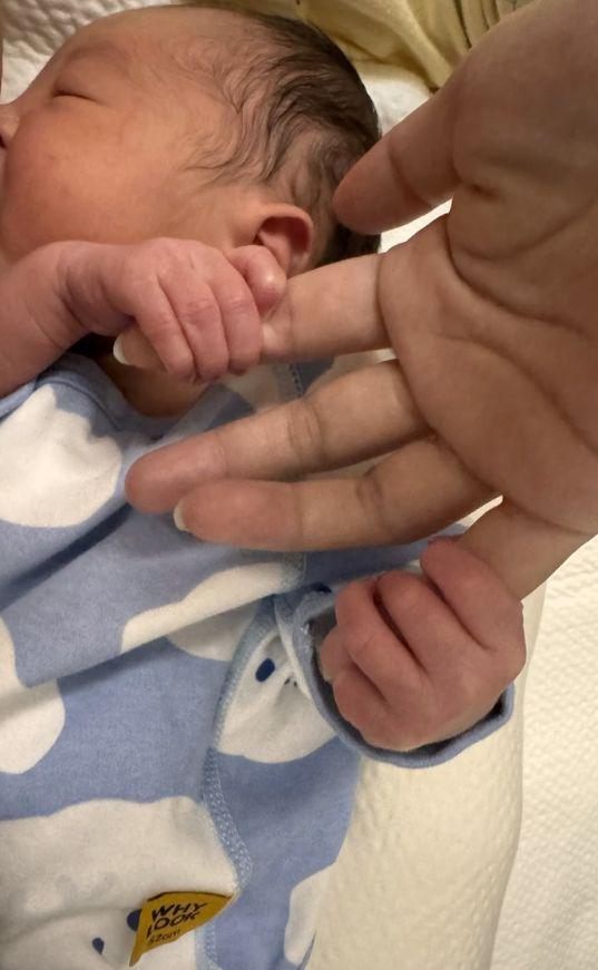 之后王逸宸还晒出多张宝宝的单人照,刚出生的他脸蛋小小的,手指也小小的,一只手只能抓住大人的一个手指。