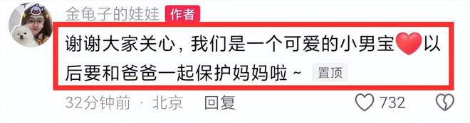 在评论区,王逸宸感谢了大家的关心,透露自己生下的一位男宝宝。