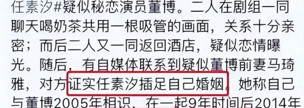 网上传出了任素汐是 " 第三者 " 的消息,而爆料者自称是董博前妻的闺蜜。