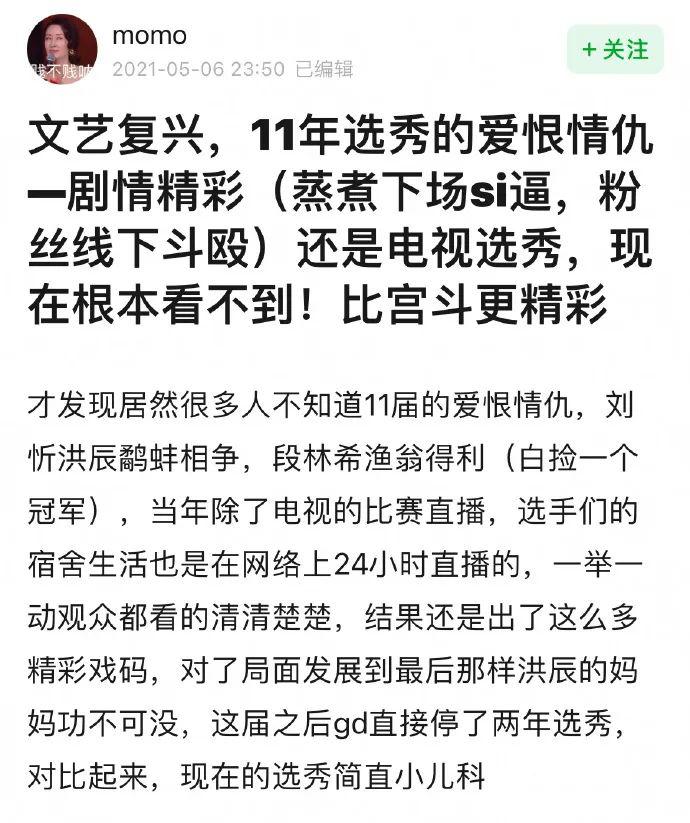 然后刘忻粉丝就把所有票都投给了当时另外一位选手段林希,就为了洪辰也拿不到冠军。