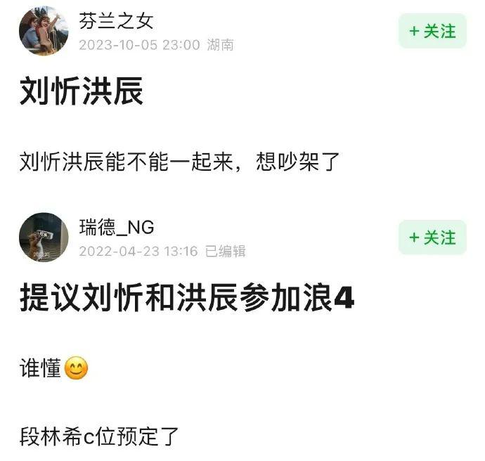 前几年一直有网友提议让刘忻和洪辰都来《浪姐》呢,理由就是想吵架了。