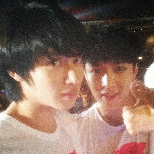 14 年,希澈在 ins 上更新了一张自己和张艺兴的合影照片,俩个人站在 SM town 的舞台上。