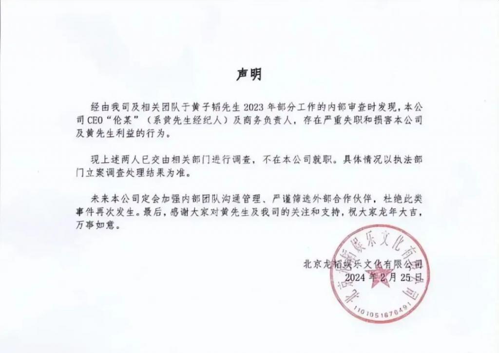 不知道会是什么结果,但被调查的人都是黄子韬身边最亲密的工作伙伴。