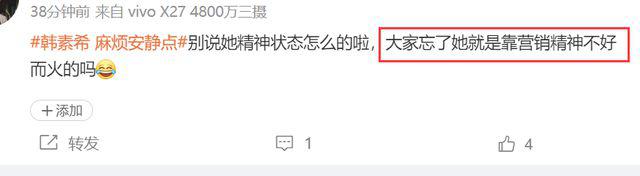 还有人表示韩素希就是靠营销精神状态不好而火的。