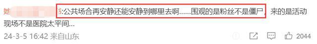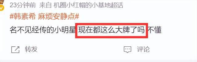 对此,有网友表示韩素希耍大牌,称公共场合再怎么安静又能安静到哪里去,围观的是粉丝不是僵尸。