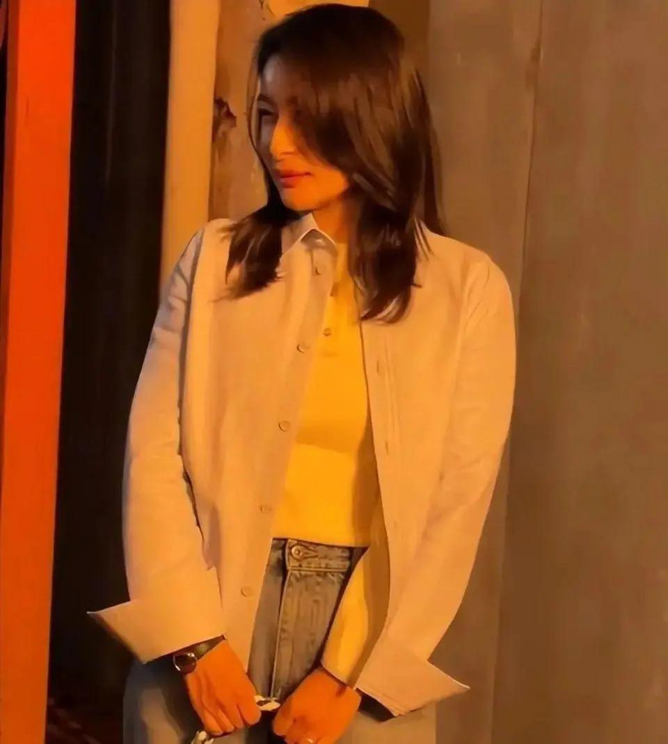 在米兰时装周上除了郭晶晶以外,其他女明星都打扮的比较时尚,而她则只是穿着简单的牛仔裤和白色内搭。