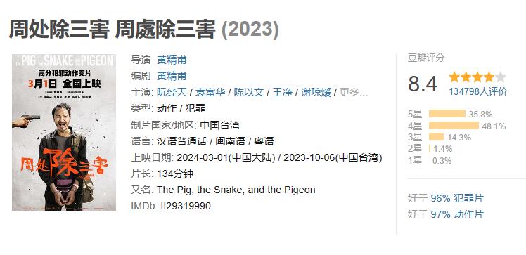 上映 2 天,豆瓣平台 13 万人,打出 8.4 的高分!