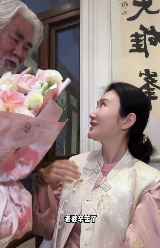 视频中的最后,张纪中忽然现身,他捧着一捧鲜花献给妻子,直言妻子 " 辛苦了 ",并感谢了网友的祝福。