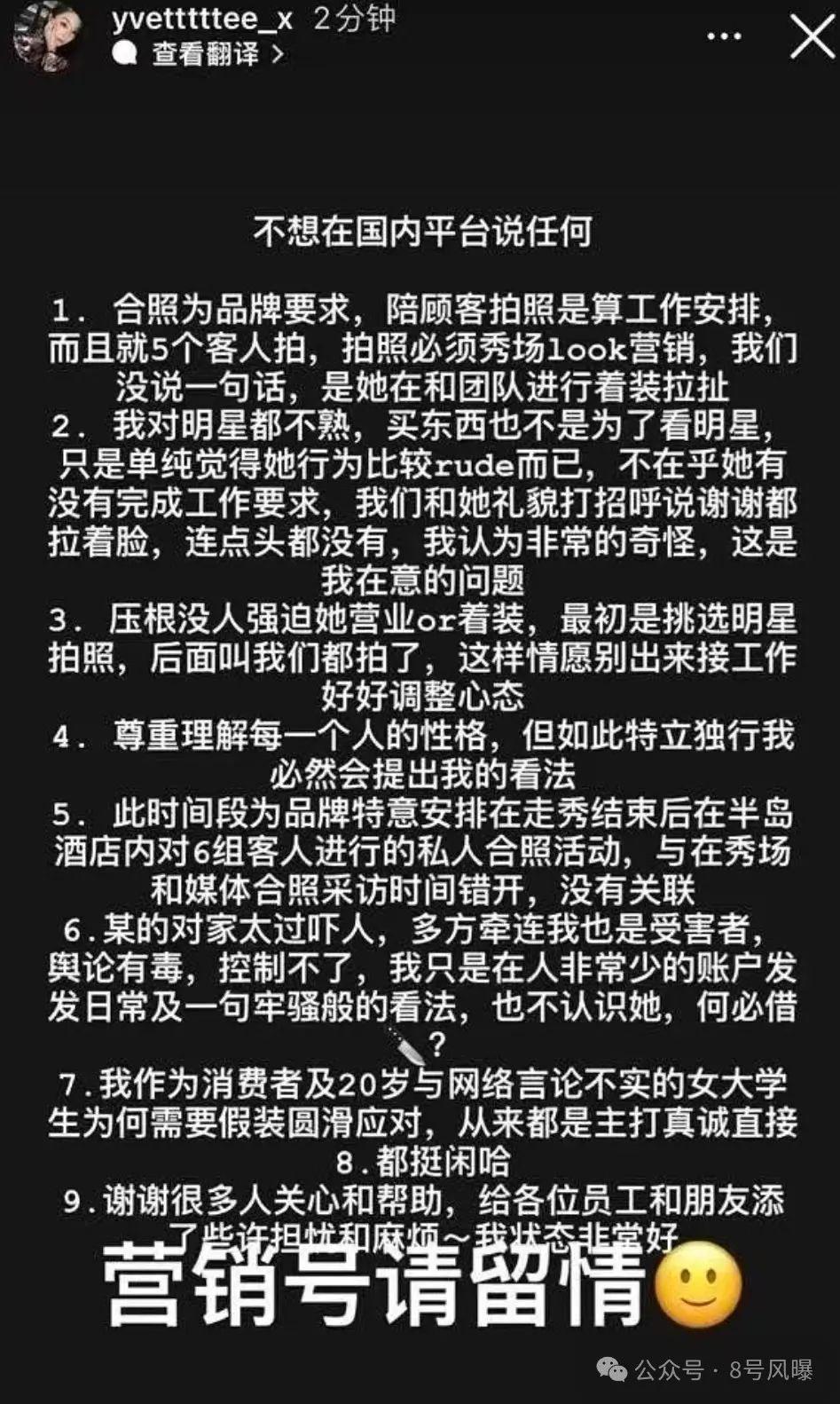 她不想因为这件事陷入舆论风波,所以详细地说明了事情的经过。
