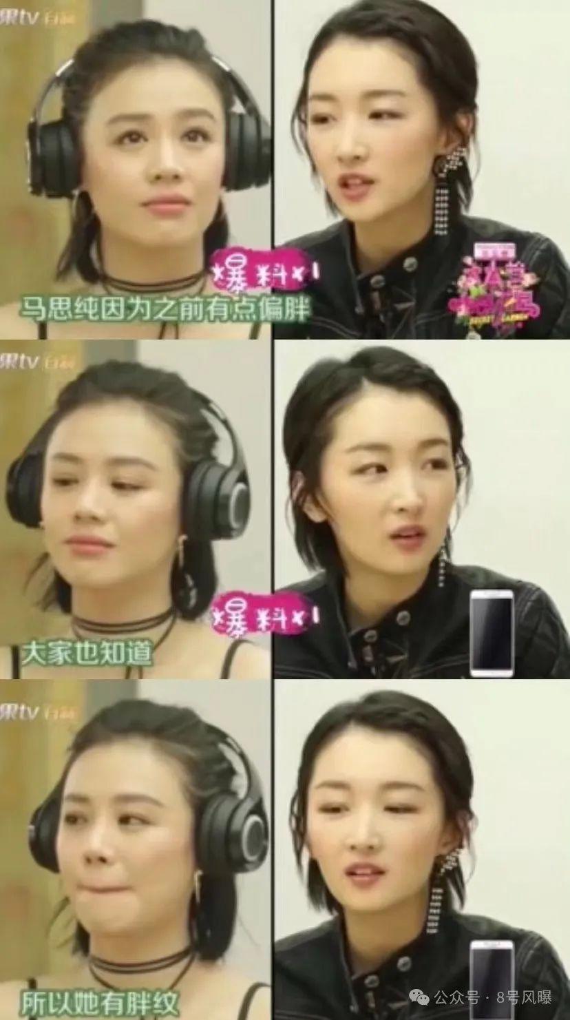 二人参加综艺《快乐大本营》时,周冬雨还爆料只有自己知道马思纯的身上有几处肥胖纹,还说是因为她之前很胖。