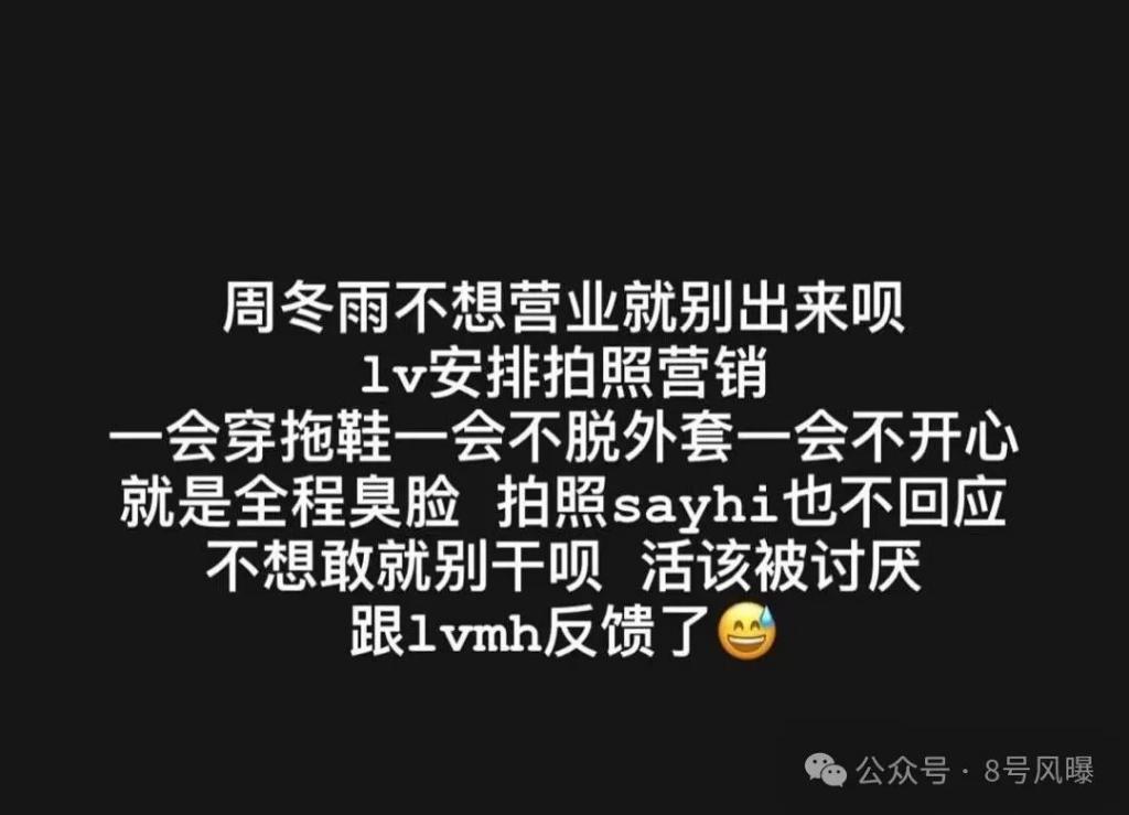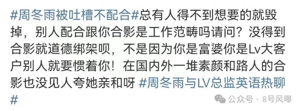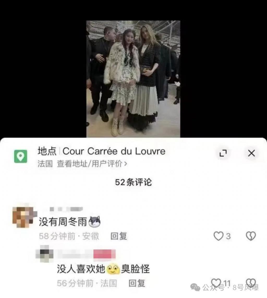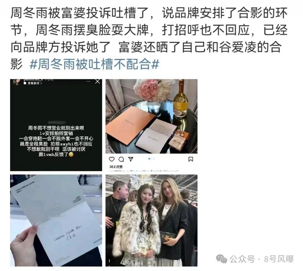 昨日,有一位参加巴黎时装周的富婆在社交媒体发文吐槽周冬雨,引发热议。