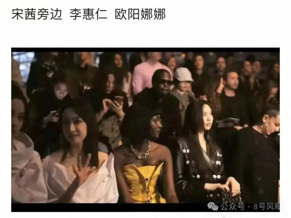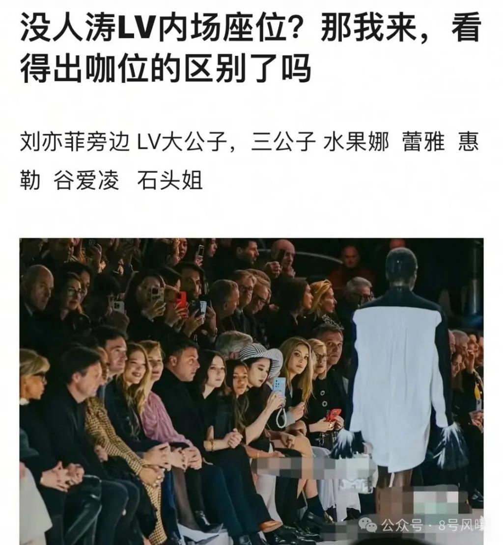 而刘亦菲与宋茜都坐在人堆中,身边是 LV 大公子、三公子、谷爱凌、水果娜等知名人物。
