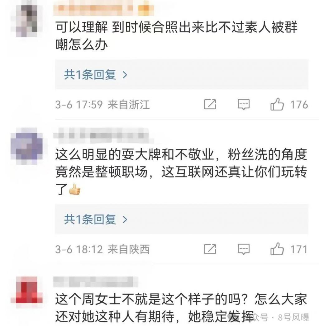 稍早,也有少数粉丝为周冬雨洗白,说配合别人合照不是周冬雨的工作范畴,她有拒绝合照的权利,吐槽她耍大牌纯属是道德绑架。