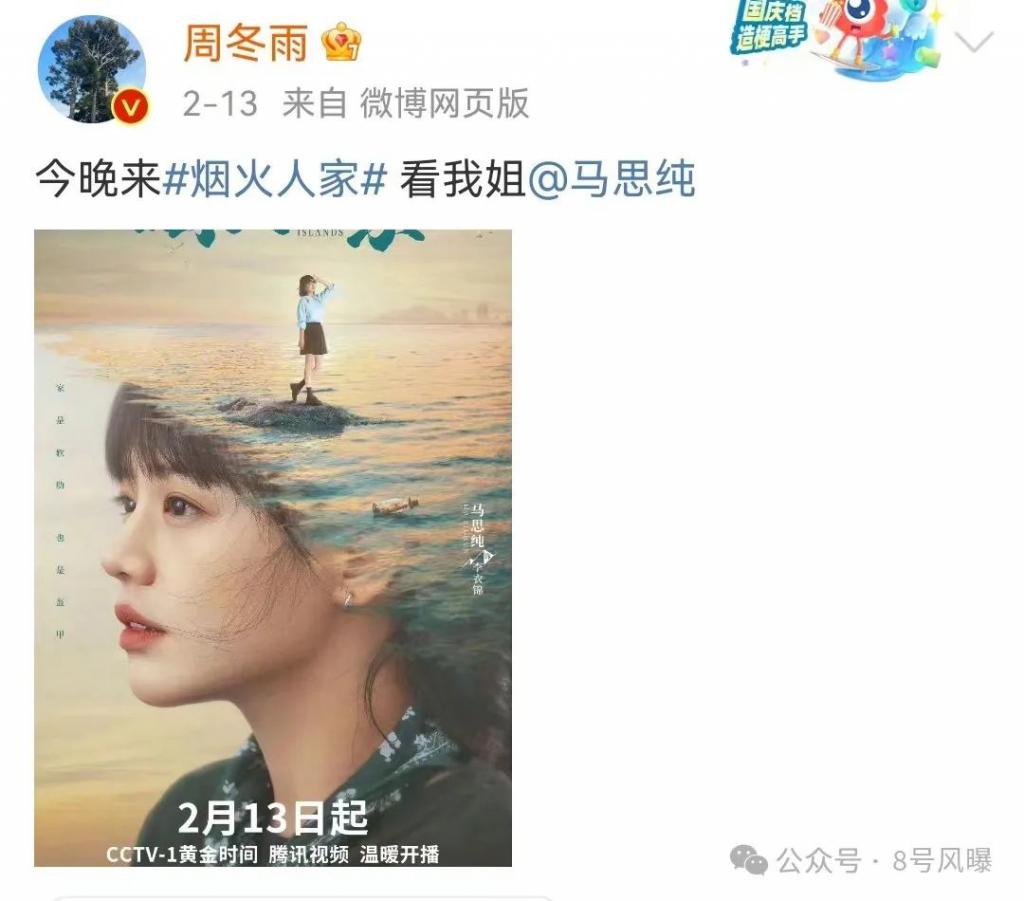 周冬雨也为马思纯的新剧《烟火人家》宣传,并称呼马思纯为姐。