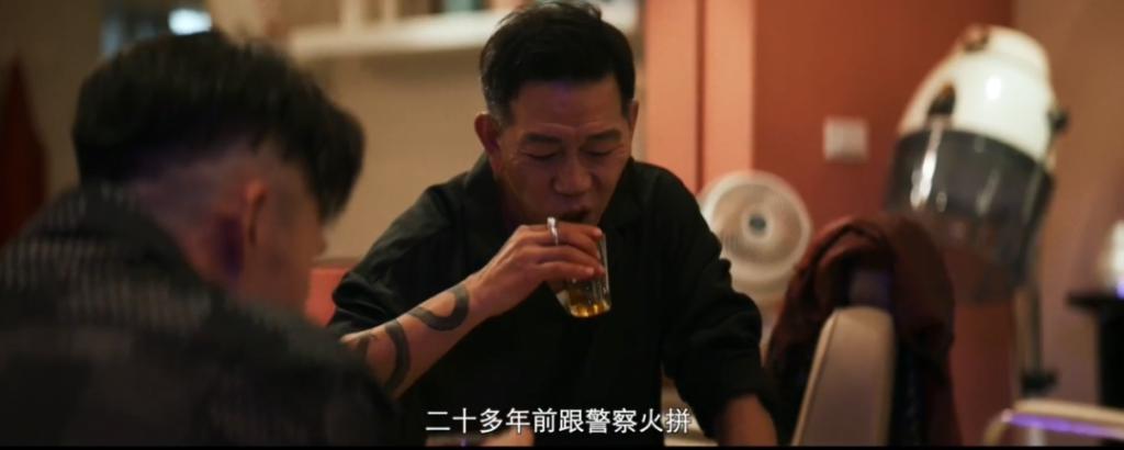 小弟做错了事,他拎起酒瓶利落地砸下去,一连砸了六七瓶,看上去颇有江湖规矩。