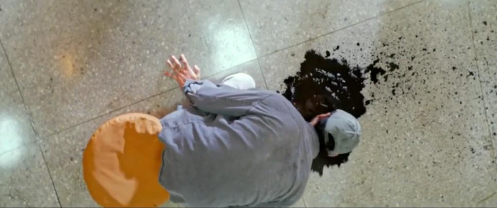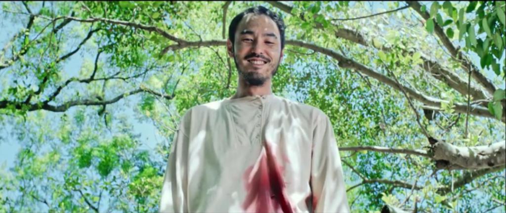整场戏癫狂、血腥、并且反差感十足,将荒谬感渲染到了极致。