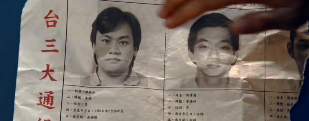 在警察局里,他见到了张贴了不知多久的通缉单,纸张已经泛黄了,上面是全台三大通缉犯的信息。