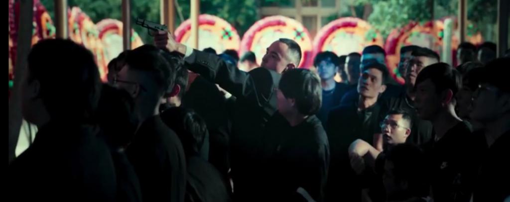 电影后期,陈桂林一场堪称屠杀级别的大规模枪击杀人戏份,也可以说得上是鲜血乱飞,场面一度十分很惊人。