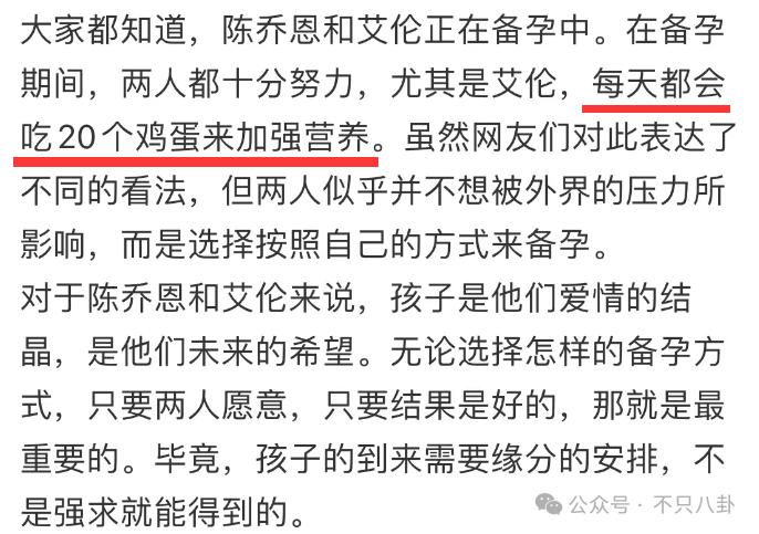 甚至还有人爆料他俩的备孕方案,看完直呼离谱!请问一天吃 20 个鸡蛋这是人类能编出来的谎话吗 ……