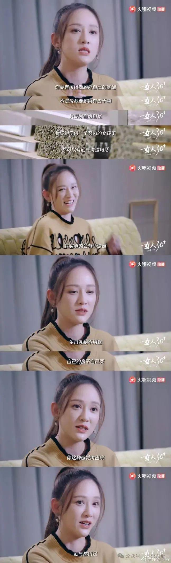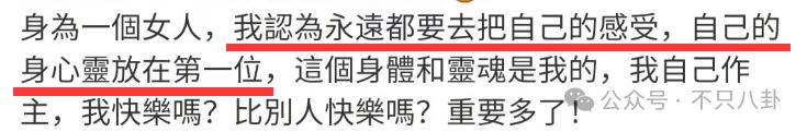 前不久她还分享了一段话:" 爱是零食,不是粮食,你什么时候来,我都不会饿死,我的强大,就是我的自主和自由。"