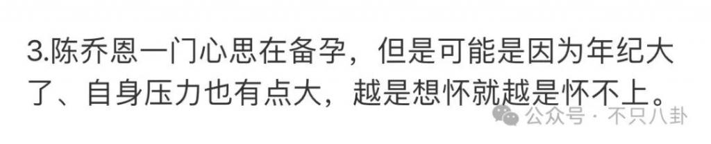 还有说陈乔恩一门心思备孕,越是想怀就越是怀不上的 ↓