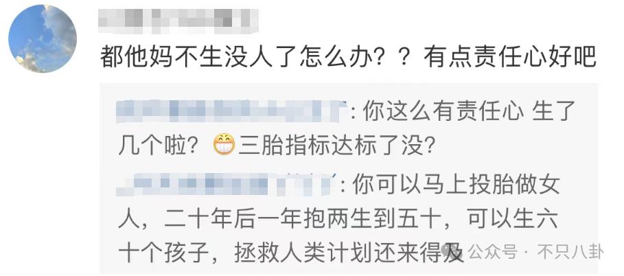 甚至有人骂陈乔恩没有责任心," 都不生了没人了怎么办?!"