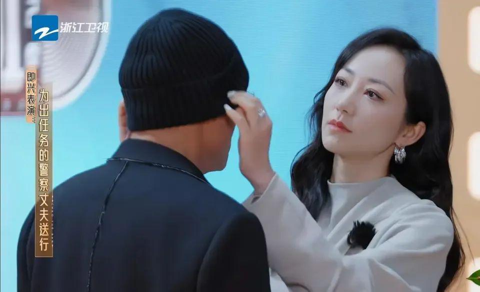 郑合惠子抽到了一条随机演技小考:送自己当警察的老公坐火车出任务,跟他说 " 我会等你回来 "