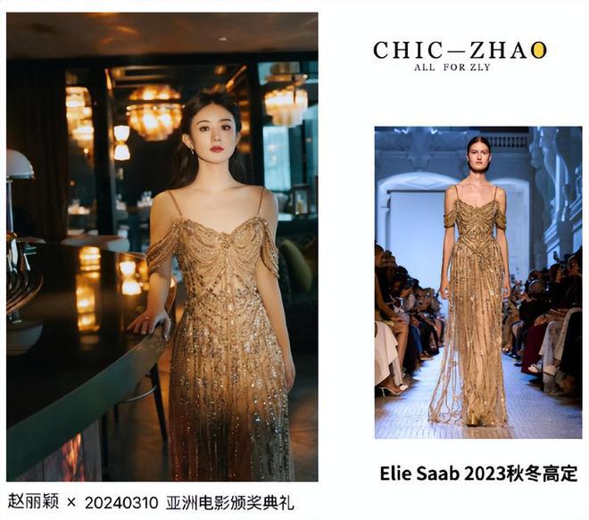 而有网友发现,这次赵丽颖身上的鎏金长裙是过季款式,这就有点掉价了。