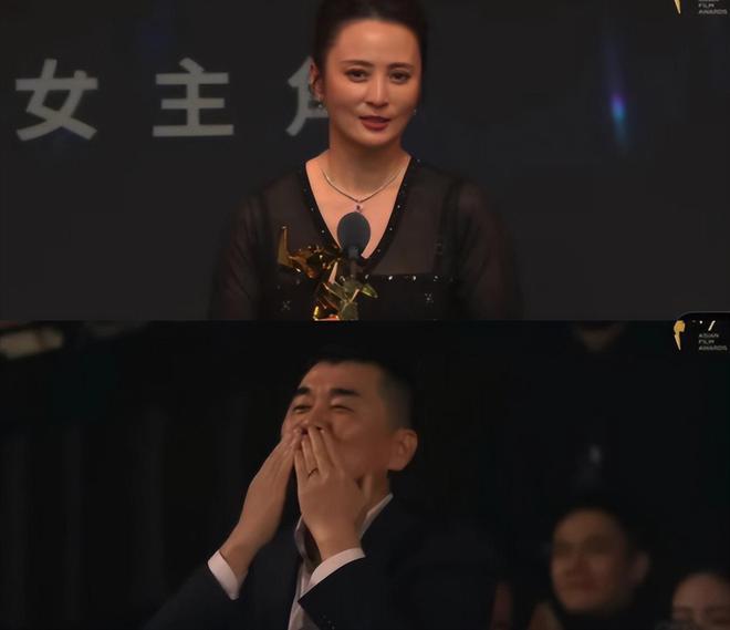 而陈建斌则是站起身对着老婆飞吻,场面太甜了。