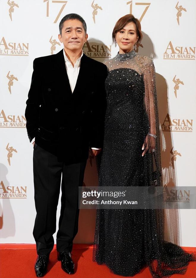 红毯上的另一队夫妻档——刘嘉玲与梁朝伟。