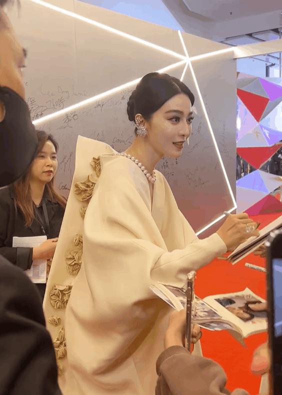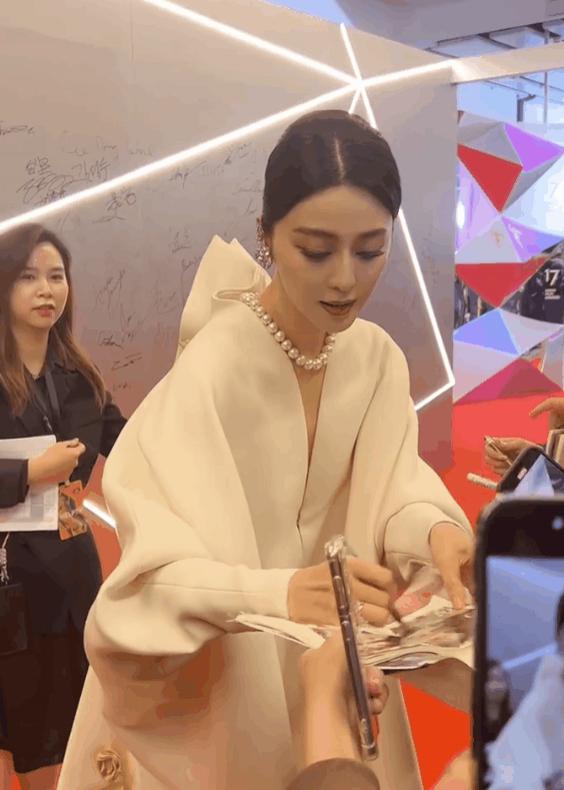 但或许是因为这些年逐渐淡出了大众视野,不再继续拍摄作品,范冰冰的气质少了些攻击性,多了些亲和力,为粉丝签名的状态毫无距离感。