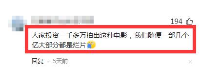 有网友感叹道,"人家投资一千多万拍出这种电影,我们随便一部几个亿大部分都是烂片"。