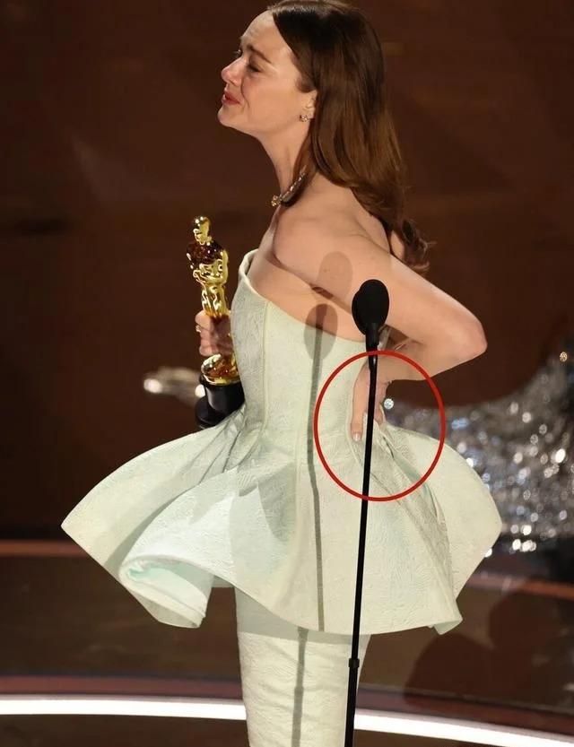 这姐也是个狠人,一手捧着小金人,一手捂着拉链,哭得梨花地转过身,把开裂的裙子直接展示给全世界的观众看。