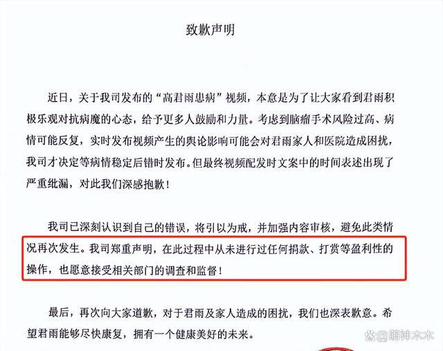 无论是高君雨妈妈还是 MCN 公司的声明,几乎都是在甩锅,高君雨妈妈把模糊时间线的行为推给网红机构,机构则表示延迟发布初衷是体谅高君雨的病情,细节操作中出了纰漏,似乎是想大事化小小事化了。