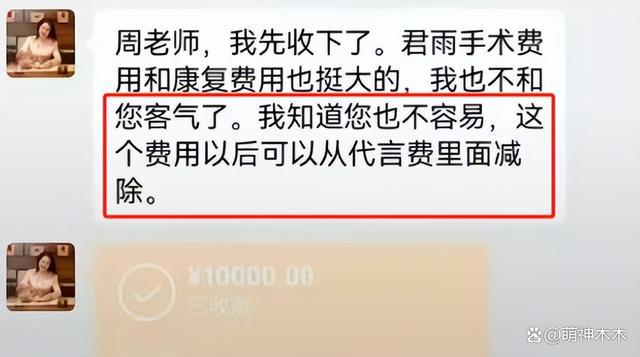 同时,周先生解释了一万元并非代言欠款,表示 2023 年度代言合同已结清,这笔款项为个人慰问金,高君雨母亲接收时建议冲抵 2024 年尚未结算的代言费。