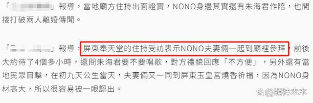不仅如此,根据媒体报道,NONO 夫妻二人前往寺庙还不是最开始大家认为的忏悔,而是去寻求保佑去了。