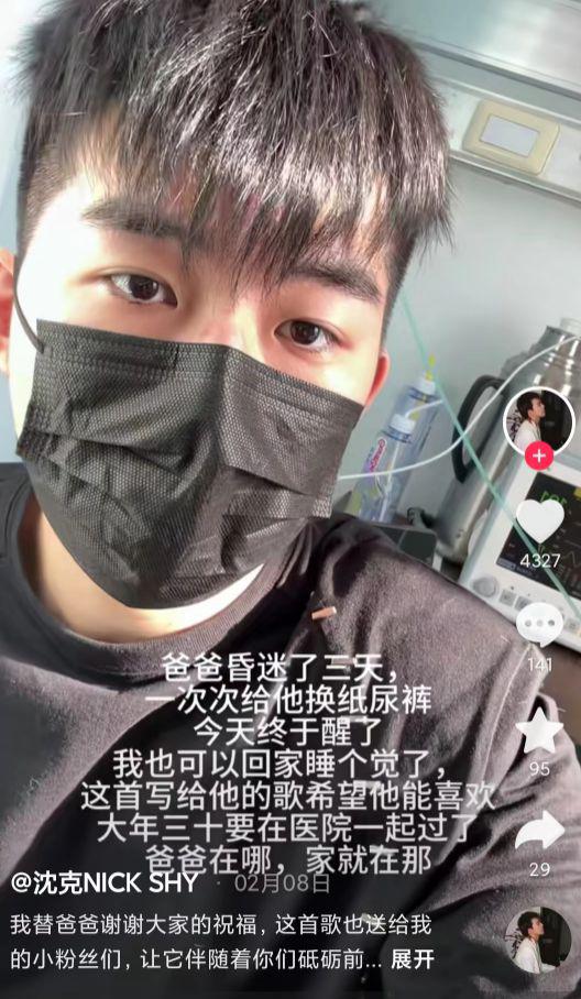 沈克常常在社交账号分享父亲焦世宁的病情。2 月 6 日,沈克晒出父亲焦世宁在 ICU 抢救的画面,讲述父亲的病况。