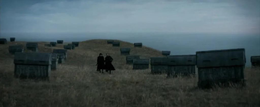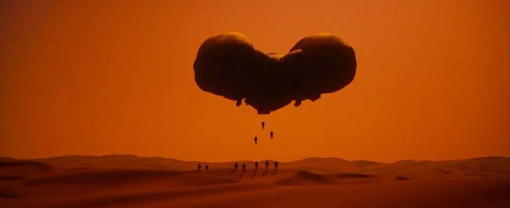 《沙丘 1》中,当保罗踏入厄拉科斯星球之前,维伦纽瓦设计了一组蒙太奇,展现保罗孤身行走的状态,有了 " 寄蜉蝣于天地,渺沧海之一粟 " 的意境,同时,也预示了他即将面临的孤岛命运。