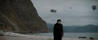 《降临》的异世界设定,《银翼杀手 2049》的巨物崇拜和救世主议题,以及这些影片所共通的人在面对命运时的无措、挣扎与奋起,与极具庄重感和史诗感的场面与视听技巧。