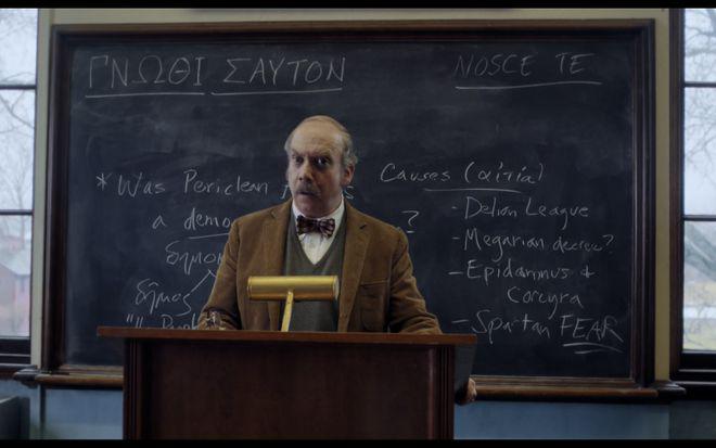 汉纳姆身上的不合时宜是他最大的特点,是佩恩花了最多笔墨去塑造的人物性格。佩恩的高明之处在于他毫不遮掩这种不合时宜的古板给人带去的厌烦,他坦率地告诉观众:是的,这个古板的中年教师保罗 · 汉纳姆就是一个会讨人厌的 loser。