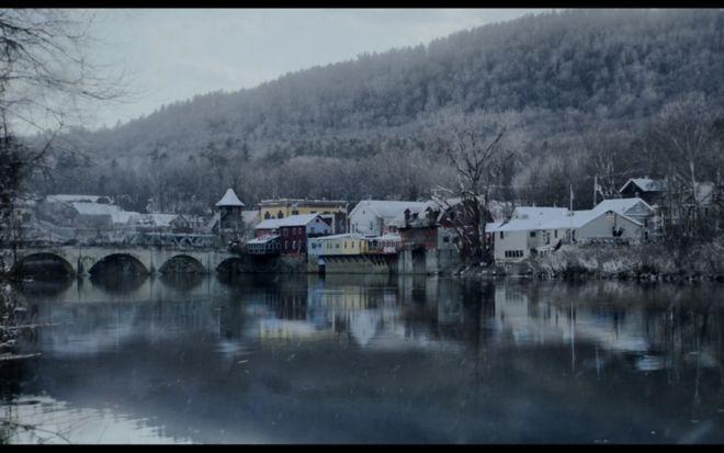 胶片效果的片头让带着一丝忧伤的怀旧感扑面而来,然后,伴随着安静的台词和合唱团的歌唱,画面由室内的排练毫无预兆地切换到这个新英格兰小镇白茫茫的冬日景色,仿佛这里所有的人都被悠扬的歌声笼罩其中。