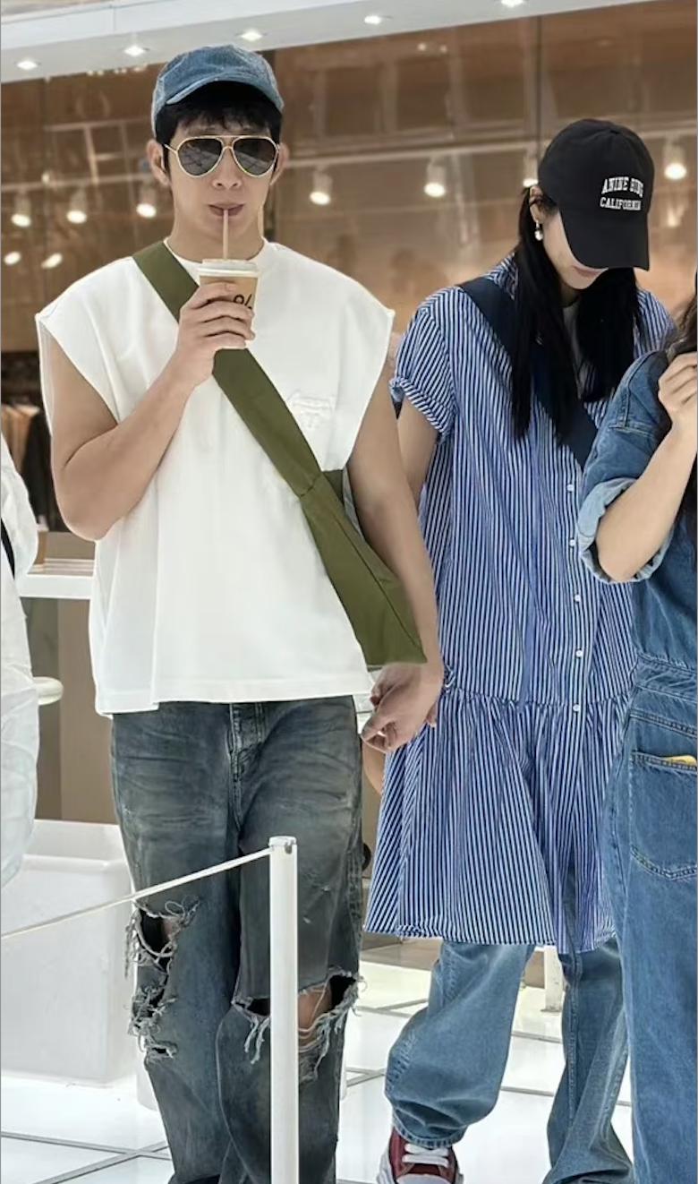 虽然两个人已经尽量低调了,但是因为身高、气质、衣品都太出众了,还是时不时会被人给认出来。谁让他们俩就算穿着私服都像在拍大片?活该。