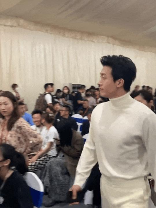 刘雯还没出场的时候,井柏然就早早举好手机,在刘雯出现的那一刻镜头就全程跟随,脖子也跟着扭了 360 度,从正面拍到侧面,再从侧面到背影,直到看不见刘雯了才把手机放下来。