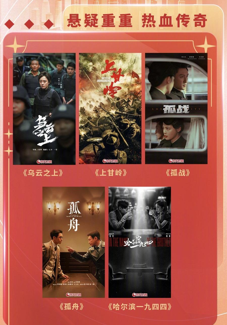 此外,东方卫视还储备了战争题材电视剧《上甘岭》,谍战剧《哈尔滨一九四四》《孤舟》《孤战》,以及《庆余年 2》《大奉打更人》等头部古装大剧,将为观众带来品质与燃情兼具的视听盛宴。