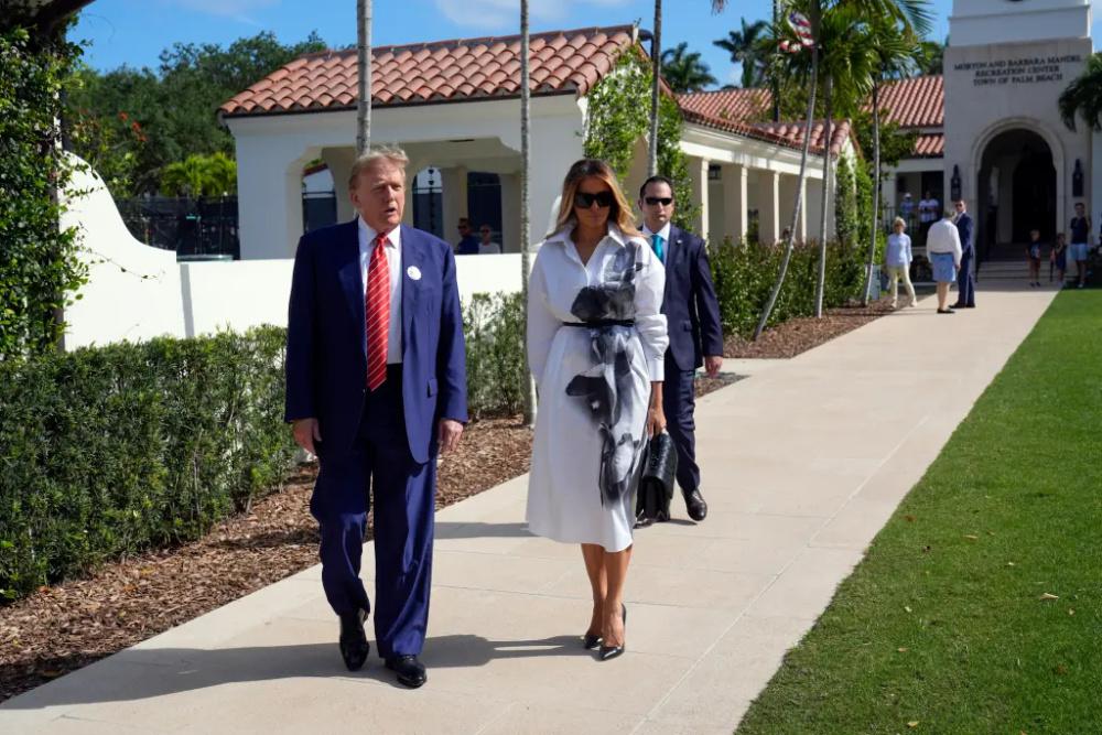 当地时间 3 月 19 日,唐纳德 · 特朗普出现在佛罗里达州的西棕榈滩投票点,在初选中为自己的投票,而他的夫人梅拉尼娅 · 特朗普也罕见地陪在了身旁。