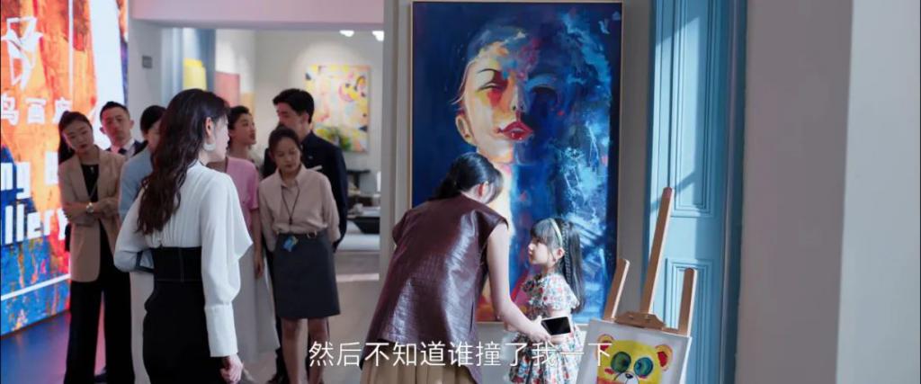 之后,为了突出 " 带孩不易 " 以及引出前任的矛盾,继续不顾合理性地,让顾茉莉放任孩子在画廊的名家之作旁画画。