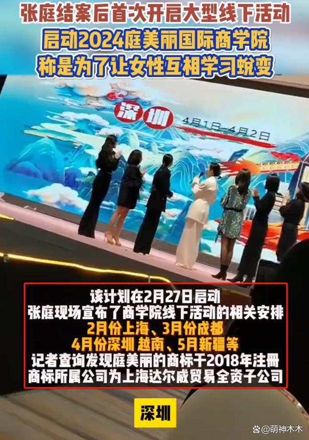 其实这一系列计划早在 2 月 27 日就已经萌芽,而且张庭并不满足于这几场活动,她还在现场宣布了商学院线下活动的后续安排,每月份都会在不同的城市和学员见面,扩张自己的商业版图。2 月份上海、3 月份成都、4 月份深圳和越南、5 月新疆等。足以可见,此前众多投资 TST 血本无归的普通受害者们的控诉并没有影响到张庭前进的步伐,还让她越挫越勇。